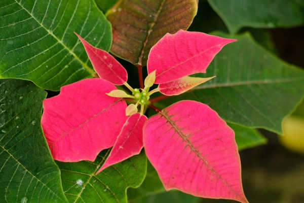 4, watering: Poinsettia drought tolerance is not strong, but also afraid of water wet, so according to the climate and growth conditions for watering.Growth period to keep the soil moist, but not water, flowering to reduce watering, more water is easy to fall.Water evenly, otherwise it will cause the leaves to yellow and fall off, and the branches will grow unevenly.
