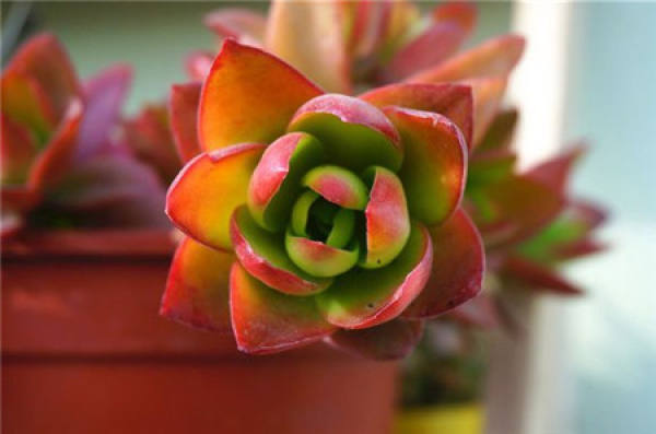 The color of leaves in the growth stage of fire sacrifice love is red and green, and the color of leaves in the period of dehydration or dormancy is red or pink. Watering has a great relationship with the color of leaves. Usually water thoroughly. Spring and autumn is the growing season, you can properly pour more water, but do not water basin soil.
