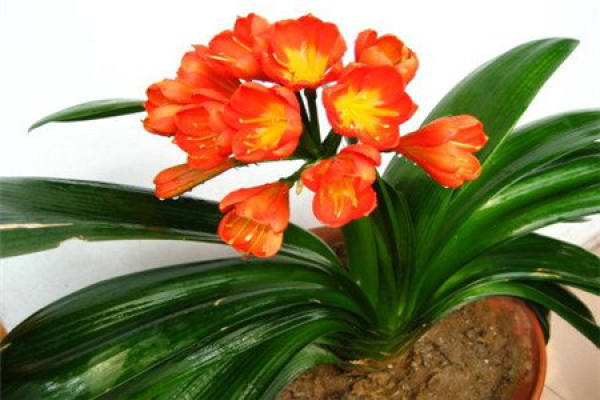 The flower color of stemmed Clivia is orange red, and the leaves are tender green. Generally, the price of varieties is about 50-100 yuan per pot, while some precious varieties with yellow flowers are worth more than 10000