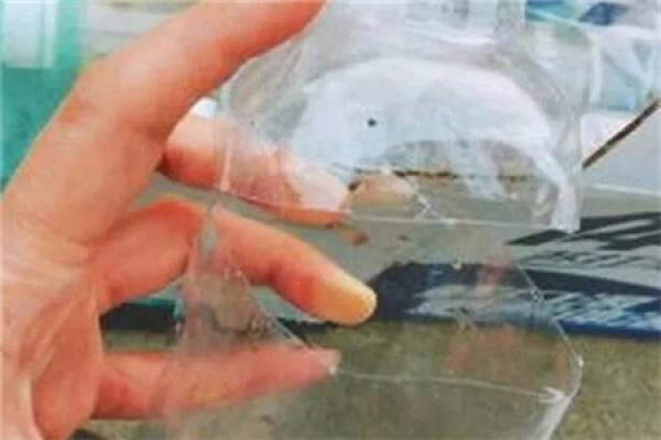 2. Collect some mineral water bottles and poke holes at the bottom. Cut the top half of the bottle, don't cut it completely, leave a little connection.